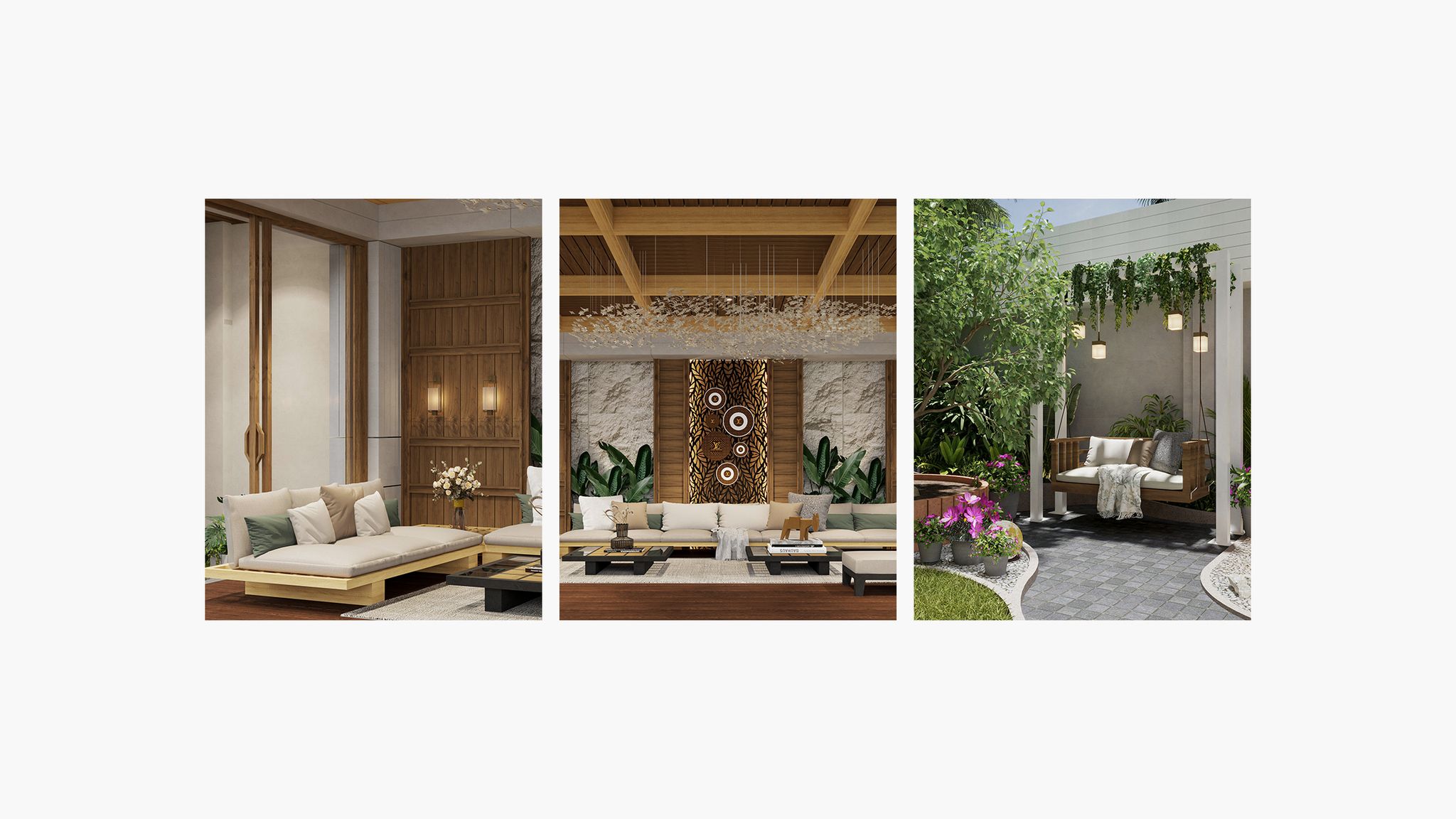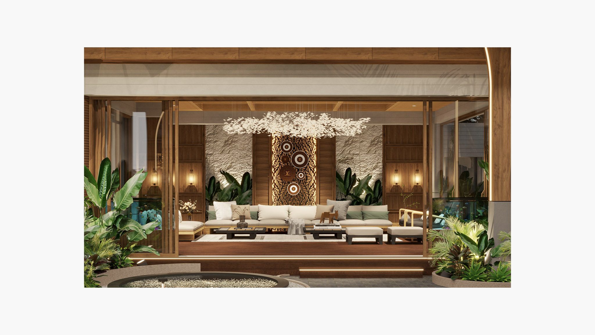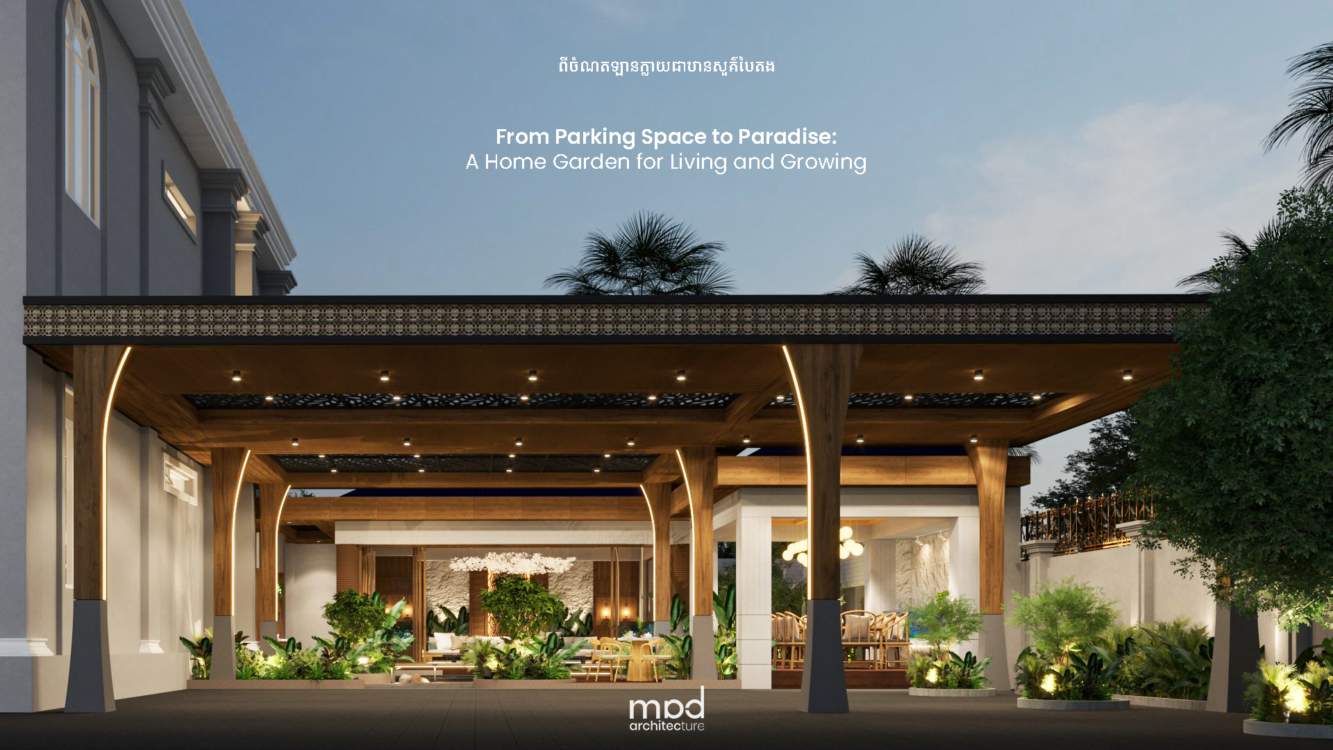 This project reimagines a former villa parking lot into a peaceful, multi-functional outdoor retreat for family life. It features a refined gazebo with aquarium touches, a custom tea nook, outdoor dining, and a koi pond. With warm materials, lush greenery, and thoughtful design—like organic roof openings and soft lighting—the space fosters relaxation, daily rituals, and togetherness close to home.